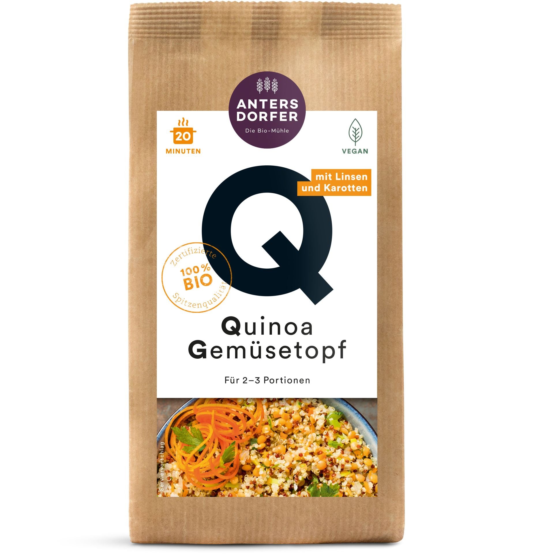 Die Mischung aus rotem und weißem Quinoa, roten Linsen und Gemüse verleiht dem Gericht eine kernige Konsistenz und einen mild-nussigen Geschmack.