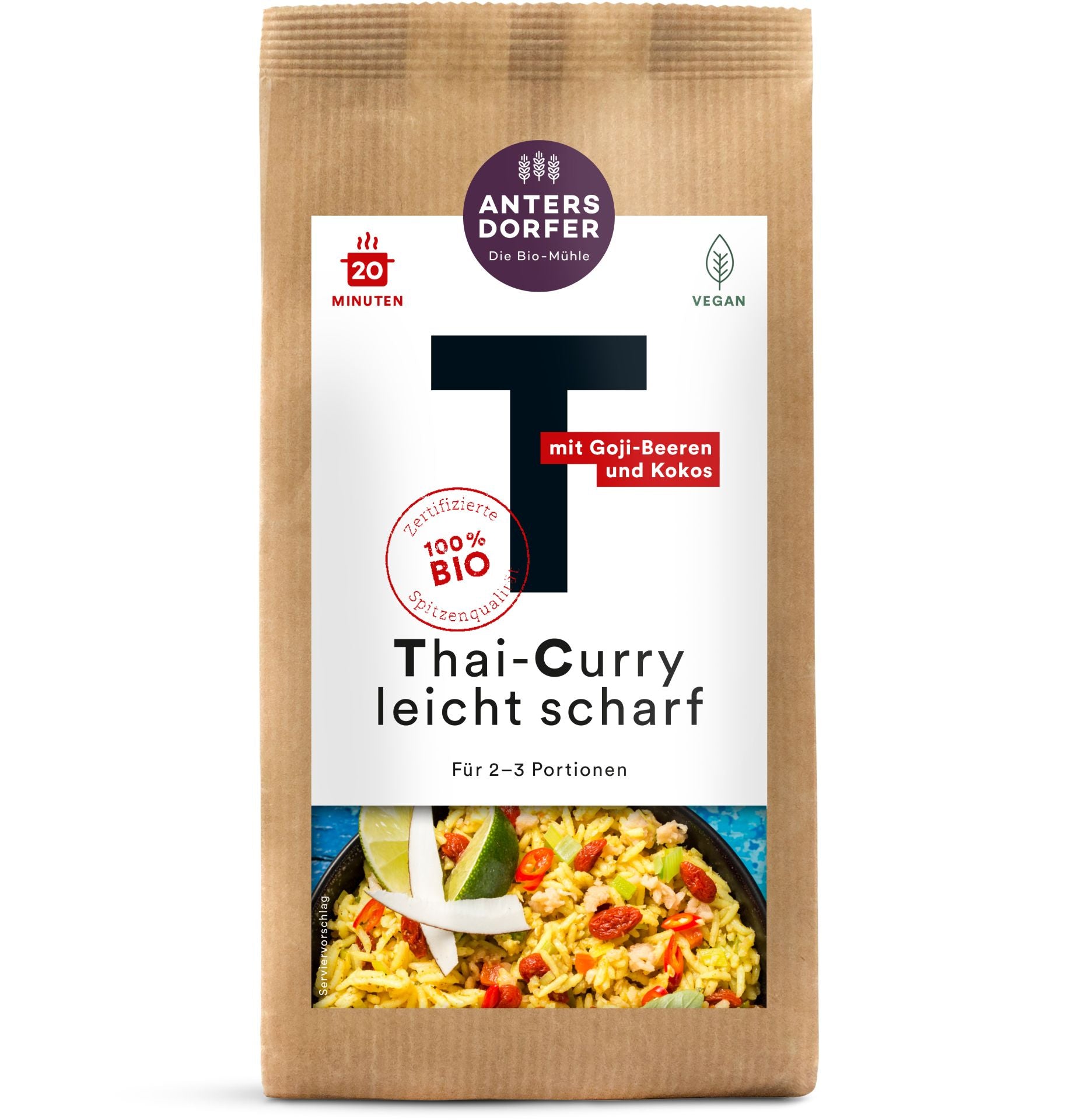 Echter Basmatireis verfeinert mit einer pikanten Currymischung, Kokosflocken und exotischen Goji-Beeren. Das macht unser Thai-Curry zu einer echten Spezialität.